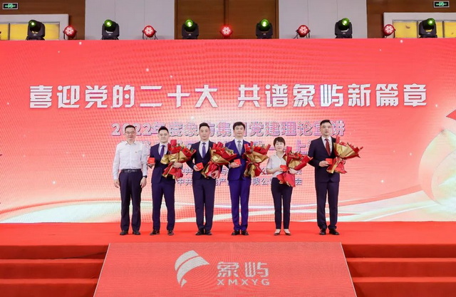 ▲象嶼集團黨委副書記、總裁鄧啟東為宣講人頒發“象嶼集團黨建理論宣講輕騎兵”榮譽勛章
