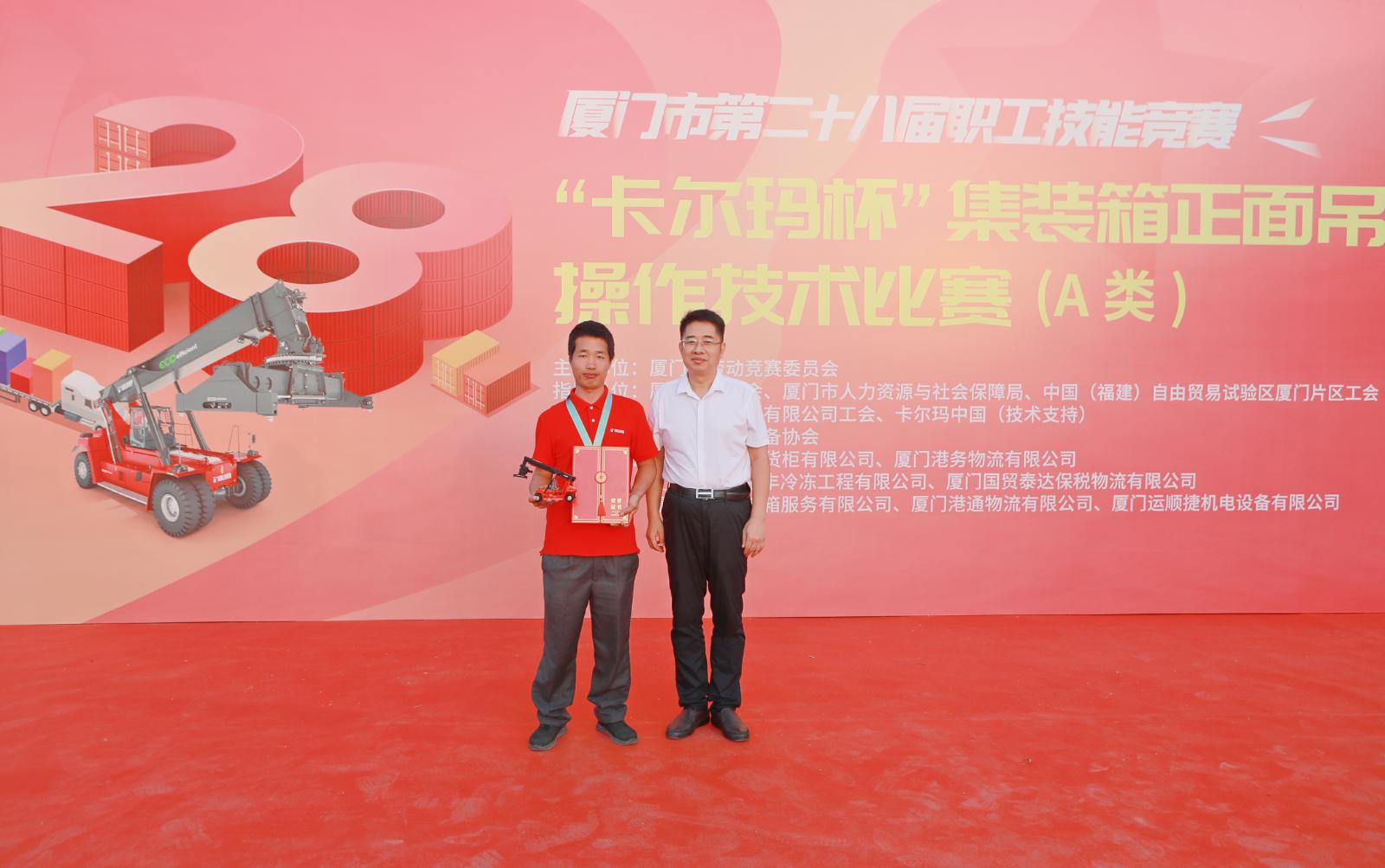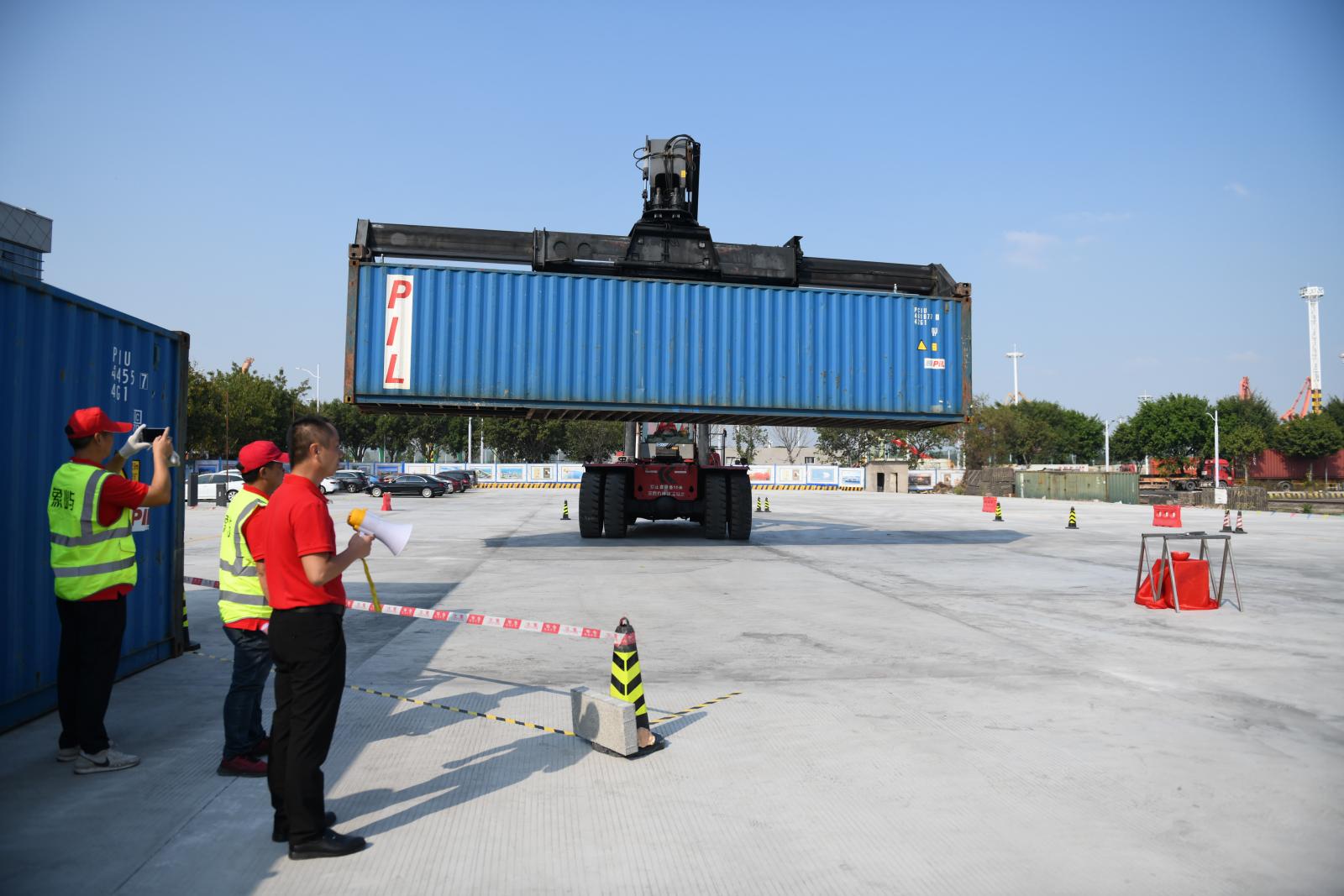 駕駛長11.4米、寬4.2米、重近70噸的集裝箱正面吊,挑戰2厘米的誤差極限,完成“神龍擺尾”“隔空取物”“巧博狀元”等高難度動作,10月24日,由象嶼集團工會承辦的廈門市第二十八屆職工技能競賽集裝箱正面吊操作技術比賽(A類)在廈門自貿片區上演“巔峰對決”。廈門自貿片區工會主席陳燕彬、副主席林共賀,象嶼集團黨委副書記、工會主席邵蕰默出席開賽儀式。