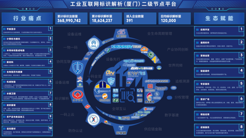 2022年8月,由象嶼集團旗下廈門市物聯網產業研究院承接建設的國家工業互聯網標識解析(廈門)綜合型二級節點正式投入運營,為廈門乃至全國企業提供專業的標識注冊、標識查詢、標識解析等數據服務。迄今平臺標識注冊量已超3.7億條,標識解析量近2千萬次,為保障工業互聯網互聯互通提供了關鍵基礎設施,助力工業企業提升數字化轉型能力,為廈門產業數字化發展注入一股澎湃新動能。