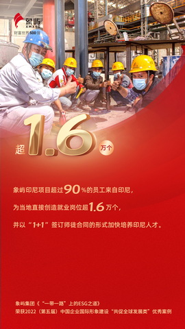 作為國家發改委“一帶一路”重點項目,象嶼印尼項目積極落實全球發展倡議,踐行ESG理念,發揮象嶼集團在供應鏈、物流等領域優勢,開展國際產能合作,既有力保障了中國市場對不銹鋼的巨大需求,提升了不銹鋼產業鏈的全球競爭力,也對印尼的產業發展、人民就業、基礎設施改善等發揮重要作用。