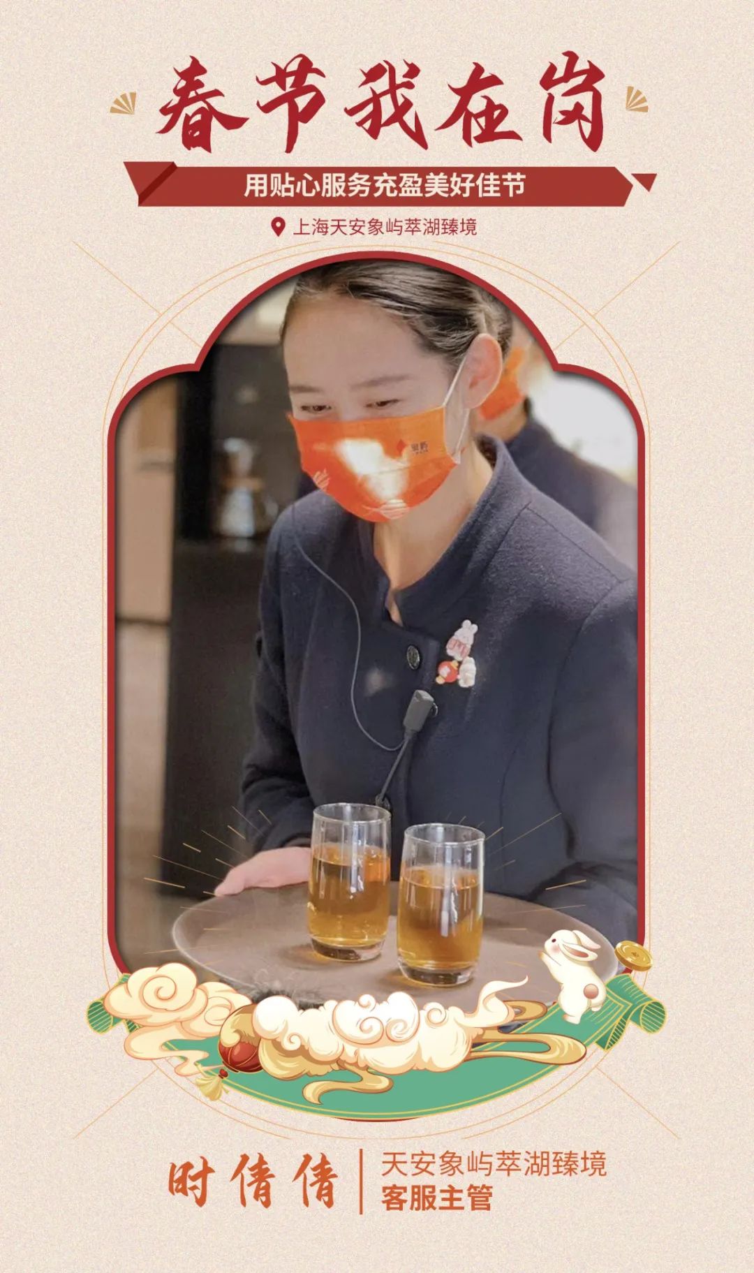 春節期間,天安象嶼萃湖臻境售樓處正常營業不打烊。由于節日期間客服人員緊缺,時倩倩主動請纓,保持在崗、帶教新人,和同事們一起,用來自象嶼的幸福生活細節充盈新年。