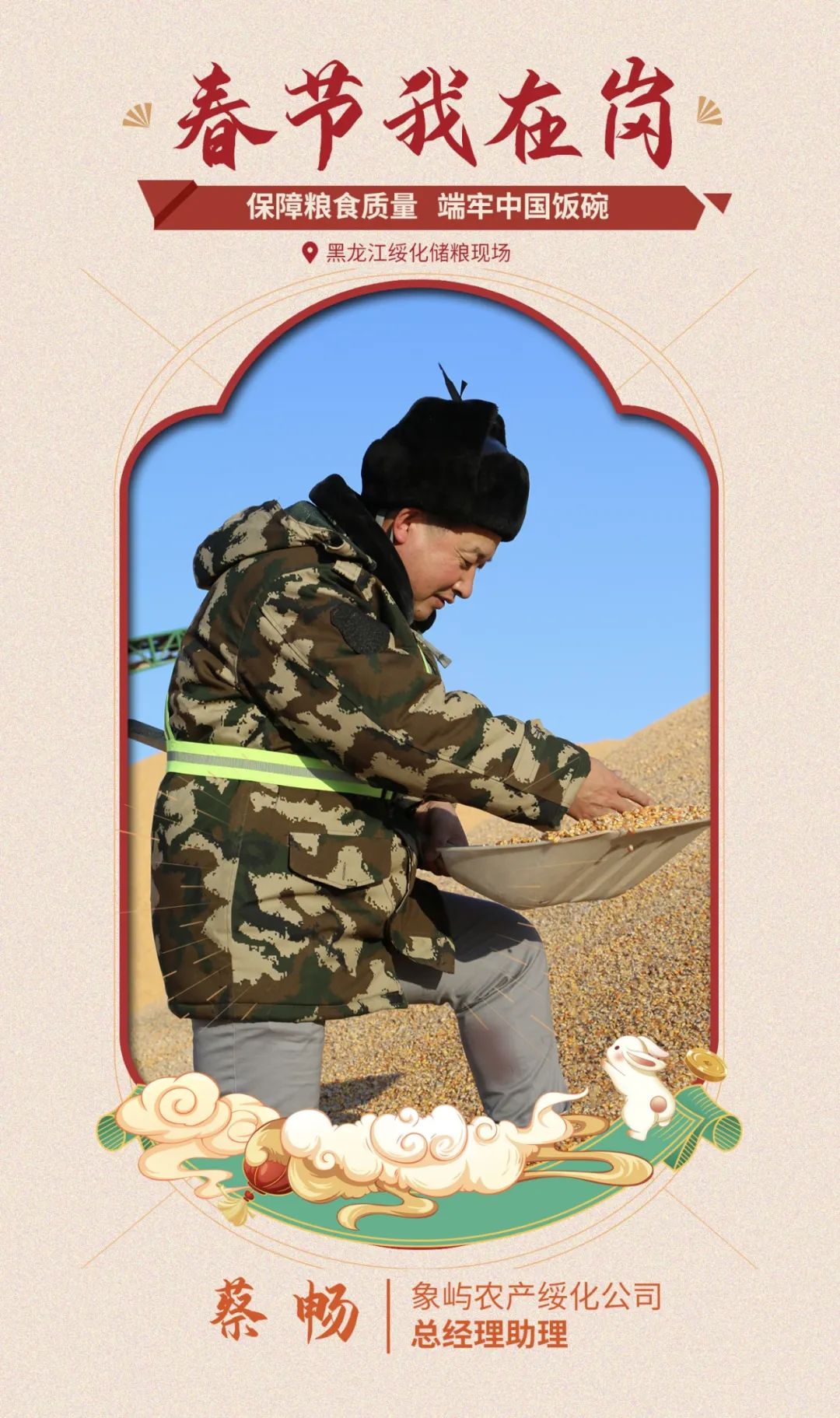 春節期間黑龍江綏化儲糧現場夜間最低溫度達到零下36度,綏化農產總經理助理蔡暢仍每天帶領值班員工檢查糧情,確保幾十萬噸糧食儲存安全。他們用庫內電子檢溫系統監控糧溫,實地巡檢倉庫封條是否完好,又到臨儲場地用測溫桿檢測深層糧溫,查看糧食有無結露、結頂現象,以一絲不茍的態度守好大國糧倉。
