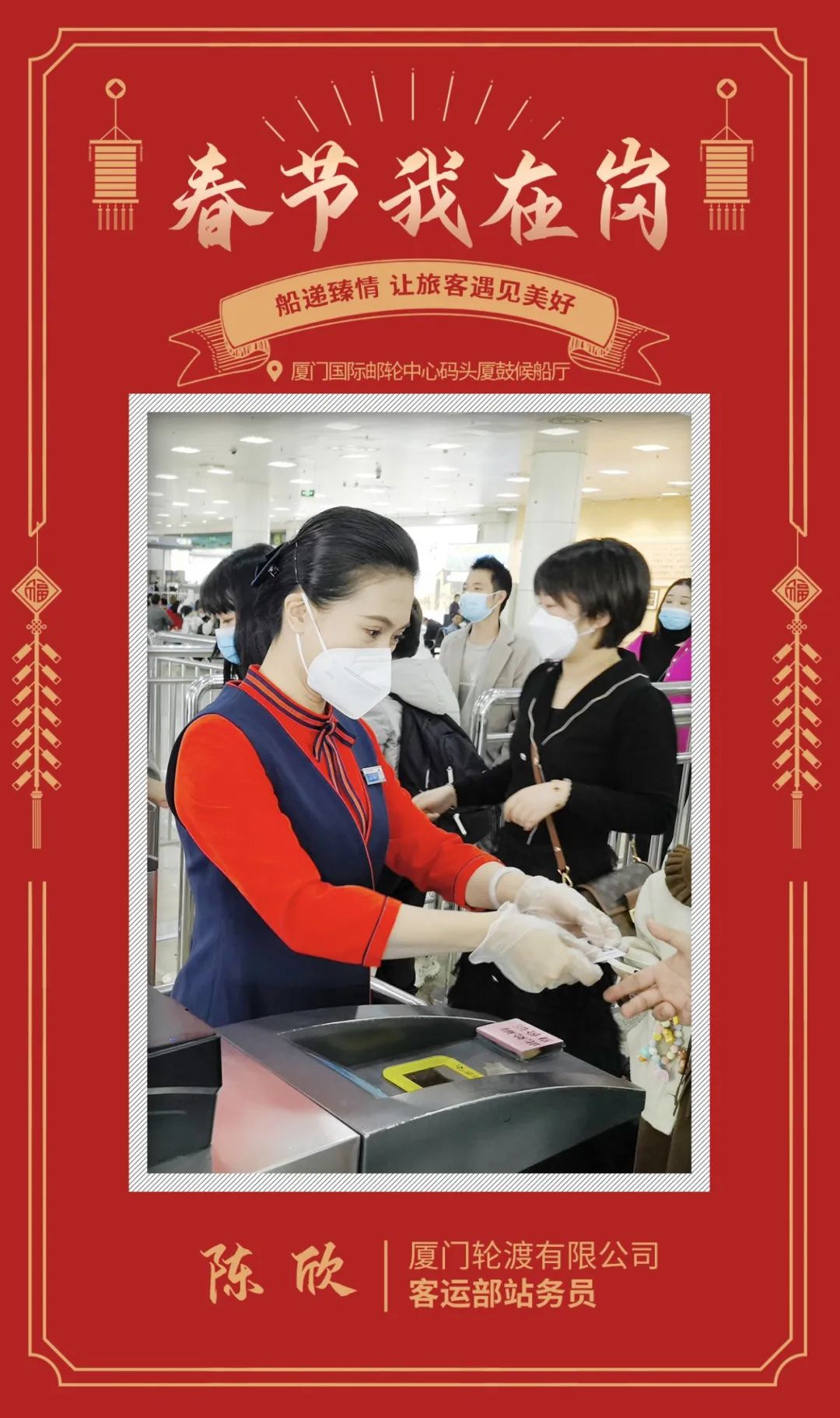 隨著廈門旅游市場的逐步復蘇,今年春節期間游客客運量預計將出現較大增幅。為保障游客開心安心出行,讓他們在鼓浪嶼之旅中遇見美好,陳欣選擇堅守崗位,船遞臻情。