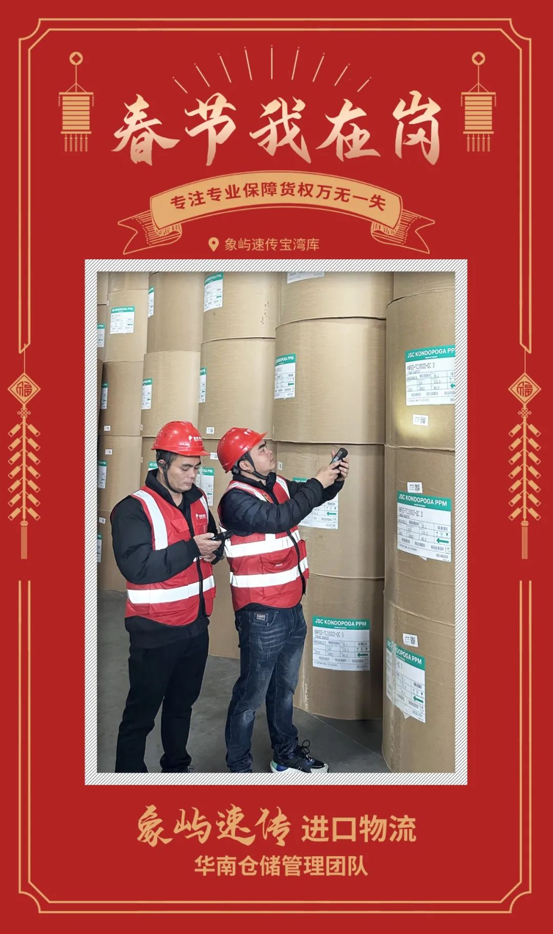 象嶼速傳寶灣庫是2023年新布局的重點倉儲節點,可為塑料、紙漿、農產品等行業客戶提供倉儲清關配送一體化、專業化物流服務。為確保客戶服務不斷檔、客戶貨權萬無一失,象嶼速傳進口物流華南倉儲管理團隊春節期間全天候在崗。