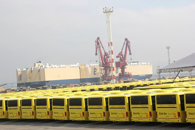 6月18日上午,“大金龍”1060輛校車出口沙特交車儀式在福建廈門現(xiàn)代碼頭舉行