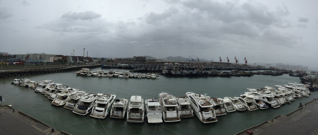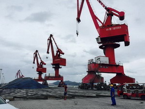 碼頭早已清場,所有大型設(shè)備均已拉上防風(fēng)鎖。現(xiàn)場還有工作人員進(jìn)行最后的加固工作,水泥擋板后面是銅精礦倉庫。碼頭很大,為確保萬無一失,工作人員24小時守候監(jiān)控,隨時排除險情。