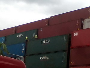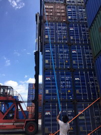 集裝箱堆積起來有20多米高,臺風(fēng)中,堆箱的穩(wěn)固性就顯得尤為重要。廈門、福州兩地的堆場早在前兩天就著手相關(guān)加固防護(hù)工作。8日白天,又有工作人員迎著大風(fēng)爬上樓頂檢查加固鋼架,不到臺風(fēng)來臨,時刻也不掉以輕心。