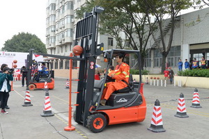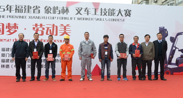 在熱烈的氣氛中,來(lái)自福建省內(nèi)福州、南平、莆田、泉州、廈門(mén)、漳州各地的16家單位20支參賽隊(duì)伍的41位叉車(chē)駕駛高手們以車(chē)代“手”,展開(kāi)了一場(chǎng)力量與技術(shù)的比拼。本次大賽為省級(jí)總決賽,這些選手均是各地初賽和選拔賽的優(yōu)勝者,獲得過(guò)國(guó)家勞動(dòng)部門(mén)頒發(fā)的中級(jí)叉車(chē)工(含)以上資格證書(shū)或具有3年及以上叉車(chē)從業(yè)經(jīng)驗(yàn)。據(jù)悉,獲得本次省級(jí)決賽個(gè)人賽第一名的選手,可按程序申報(bào)“福建省五一勞動(dòng)獎(jiǎng)?wù)隆保猾@得團(tuán)隊(duì)項(xiàng)目第一名的團(tuán)隊(duì),可按程序申報(bào)“福建省工人先鋒號(hào)”。