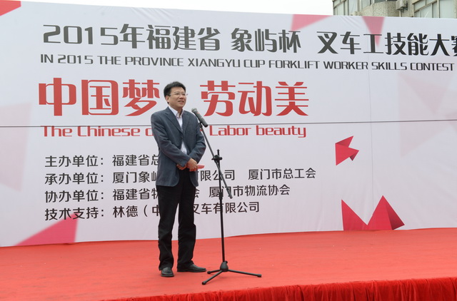 叉車(chē)工是港口物流行業(yè)的一個(gè)重要基礎(chǔ)性工種,每個(gè)叉車(chē)司機(jī)技能水平的高低,直接影響港口物流公司的集聚輻射能力。為了提高叉車(chē)工的技能水平,促進(jìn)廣大職工鉆業(yè)務(wù)、學(xué)技術(shù),以本領(lǐng)提升促轉(zhuǎn)型升級(jí),成為現(xiàn)代港口物流領(lǐng)域的行家里手,2015年12月5日,由福建省總工會(huì)主辦,廈門(mén)象嶼集團(tuán)有限公司、廈門(mén)市總工會(huì)承辦的“中國(guó)夢(mèng)?勞動(dòng)美”2015年福建省“象嶼杯”叉車(chē)工職業(yè)技能大賽在廈門(mén)舉行。福建省總工會(huì)副主席丁文清,象嶼集團(tuán)有限公司黨委書(shū)記、董事長(zhǎng),省勞模協(xié)會(huì)副會(huì)長(zhǎng)王龍雛,廈門(mén)市總工會(huì)常務(wù)副主席陳永紅,省總工會(huì)經(jīng)濟(jì)部部長(zhǎng)林國(guó)雄,市開(kāi)發(fā)區(qū)和電子信息工委主任文建軍,象嶼集團(tuán)工會(huì)主席邵蕰默,市總工會(huì)經(jīng)濟(jì)部部長(zhǎng)游坤平等領(lǐng)導(dǎo)出席并觀摩比賽。