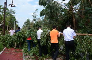 象嶼集團陳方副總裁、邵蕰默副書記、林俊杰副總裁等領導,上午奔波在島內(nèi)外察看災情,為了參與志愿服務,中午匆忙扒了兩口飯就趕回來,率先垂范,身穿志愿者紅馬甲,頭頂烈日,撿樹枝、清障礙,汗水濕透了衣衫。