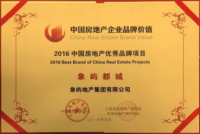 9月21日, “2016中國房地產(chǎn)企業(yè)品牌價值測評成果發(fā)布會暨房地產(chǎn)品牌發(fā)展高峰論壇”在廈門隆重舉行。會上發(fā)布了《2016中國房地產(chǎn)企業(yè)品牌價值測評研究報告》,及2016中國房地產(chǎn)開發(fā)企業(yè)品牌價值50強(qiáng)、華東區(qū)域10強(qiáng)在內(nèi)的多個相關(guān)榜單。象嶼地產(chǎn)以25.67億元品牌價值榮膺2016中國房地產(chǎn)開發(fā)企業(yè)品牌價值華東10強(qiáng),這已是公司連續(xù)第三年入圍華東區(qū)域品牌價值TOP10。此外,象嶼都城項(xiàng)目獲評 “2016中國房地產(chǎn)優(yōu)秀品牌項(xiàng)目”。