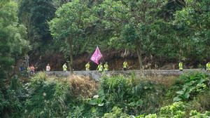 七彩旗幟飄揚在山間林