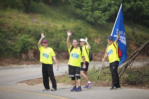 途中,男學(xué)員主動接過女學(xué)員的背包,運動達人慢下腳步細心分享著戶外運動的經(jīng)驗;有的學(xué)員剛出發(fā)不久,因環(huán)境不適一時呼吸困難,但僅稍事休息,就又下了保障車繼續(xù)接下來的20公里路程,再也沒掉過隊;有的學(xué)員徒步到半程時磨破了腳,漸漸落在了最后,同組的小伙伴發(fā)現(xiàn)這一情況后,交替往返陪伴著他,一路鼓勵一路扶攜,最終一個不少的全組抵達終點。