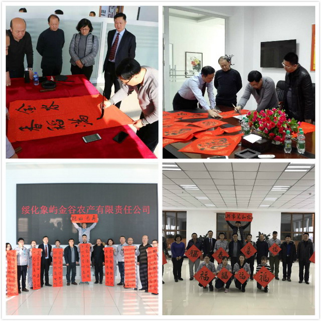 走訪中,時近春節(jié),為傳承中華優(yōu)秀傳統(tǒng)文化,營造祥和愉悅的節(jié)日氛圍,廈門市總工會、象嶼集團工會領(lǐng)導還與象嶼農(nóng)產(chǎn)員工同樂,“寫春聯(lián)送祝福”。大家集思廣益,構(gòu)思春聯(lián)內(nèi)容。有象嶼農(nóng)產(chǎn)員工提出,“當保障嚴管理齊謀共發(fā)展,勇創(chuàng)新促增效鑄百年象嶼”,橫批“家和萬事興”;邵主席接著提出一聯(lián),“創(chuàng)新轉(zhuǎn)型謀發(fā)展,開放包容續(xù)宏篇”,橫批“繼往開來”;市總工會領(lǐng)導也一同創(chuàng)作,“象嶼啟紅帆,金谷囤滿倉”,橫批“合作共贏”,希望象嶼農(nóng)產(chǎn)能以合作精神,在新的一年里繼續(xù)揚帆起航、共享五谷豐登。每條春聯(lián),都由市總工會領(lǐng)導親自潑墨揮毫,行書、隸書、草書……揮灑中,一幅幅散發(fā)著清新墨香的喜慶大紅春聯(lián)展現(xiàn)在大家眼前。瑯瑯上口的春聯(lián)春意濃,各級工會組織對員工們深深的節(jié)日問候和祝福送到了每個人的心坎里。