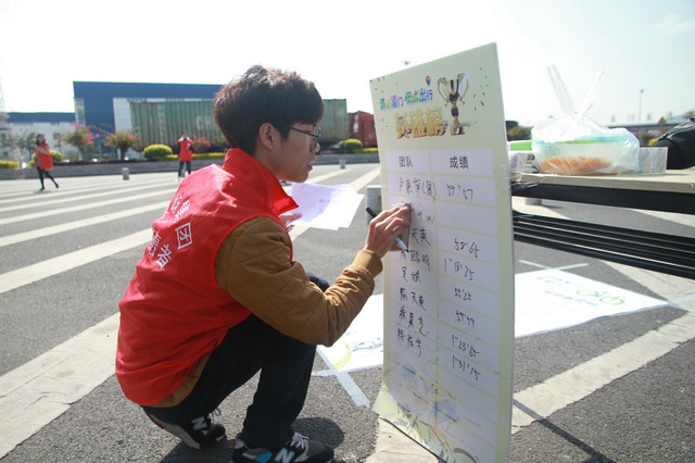 繞過10米處的石墩子,還需要繞回起點才能完成比賽。不少選手在360度大轉(zhuǎn)彎這里栽了跟頭,引得觀眾直呼:“慢一點,注意安全!”來回20米,象嶼港灣的周賢僅用了17秒9就完成比賽,問鼎繞樁賽英雄榜冠軍!