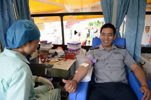 “看到這邊在搞無償獻血活動就臨時決定過來了,我身體壯,能幫更多的人我就滿足了。見笑了,剛在工地施工,滿身的泥垢,我先沖一下手臂再獻血。”