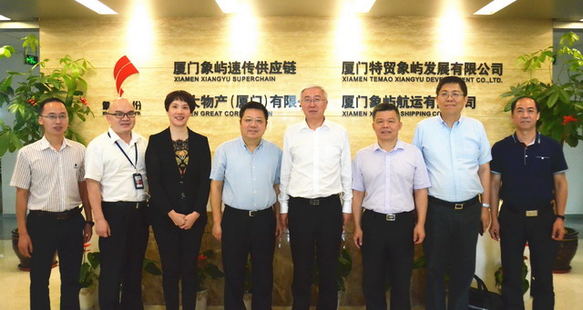 6月21日,廈門市政府副市長韓景義率領市府辦、自貿委、發改委、商務局領導一行蒞臨象嶼速傳體系內公司成大物產,考察調研公司經營工作情況,現場召開座談會,就成大發展過程中所需的政府支持進行討論,并給予工作指導與建議。象嶼集團總裁陳方、象嶼股份副總經理兼象嶼速傳總經理肖靜勤、象嶼股份副總經理范承揚、成大物產總經理童曉青等熱情接待。
