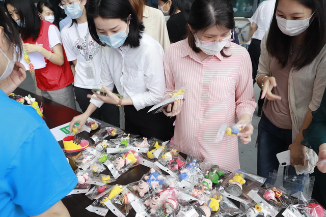 5月20日當天,國際航運中心涌動著愛的暖流。在自閉癥兒童藝術作品展覽義賣區,“星寶”們制作的各式可愛公仔和創意畫作吸引了不少象嶼員工和過路市民駐足圍觀。