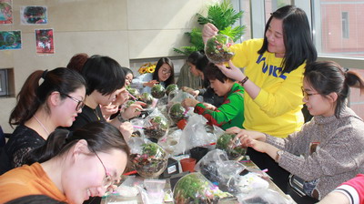 用“秀外慧中”來形容象嶼女員工們是再合適不過了。節(jié)日里,園區(qū)中心女員工走出職場,踏進廚房,用巧手打起蓬松甜蜜的奶油,烤出松軟香噴的蛋糕,裱出精致可愛的彩虹造型;股份本部的女員工們置身于古香古色的印刷工坊,系上圍裙,親手調制染料,印制出獨具個性的布包,以精細的手工和淡淡的油墨香氣致敬中華傳統(tǒng)文化;天津象嶼女員工則化身巧手園丁,鋪土、載重、置石、點綴,創(chuàng)造出一個個妙趣橫生、綠意盎然的的微景觀;大連象嶼女員工們手執(zhí)畫筆,繪出對美的詮釋,展露出鏗鏘玫瑰的另一種魅力。