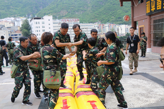 ▲抬擔(dān)架、過(guò)“險(xiǎn)橋”,感悟團(tuán)結(jié)力量