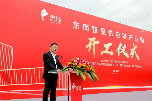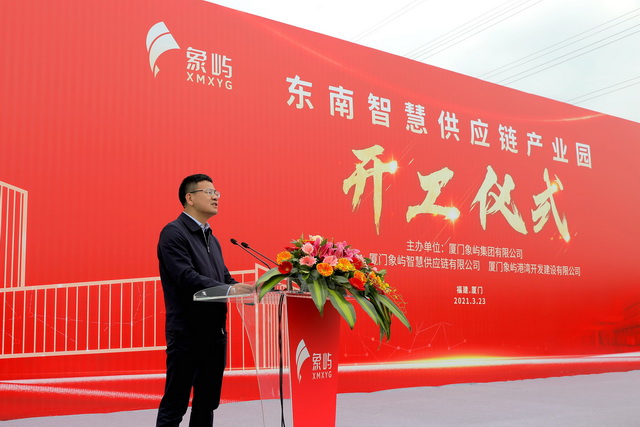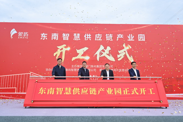 3月23日,象嶼東南智慧供應鏈產業園在廈門馬鑾灣新城正式破土動工。市政府副秘書長周桂良,市交通運輸局副局長、馬鑾灣新城片區指揮部常務副總指揮黃錦城,象嶼集團黨委副書記、總裁陳方,海滄區副區長、馬鑾灣新城片區指揮部常駐副總指揮江慶生出席見證,象嶼集團副總裁林俊杰主持儀式。