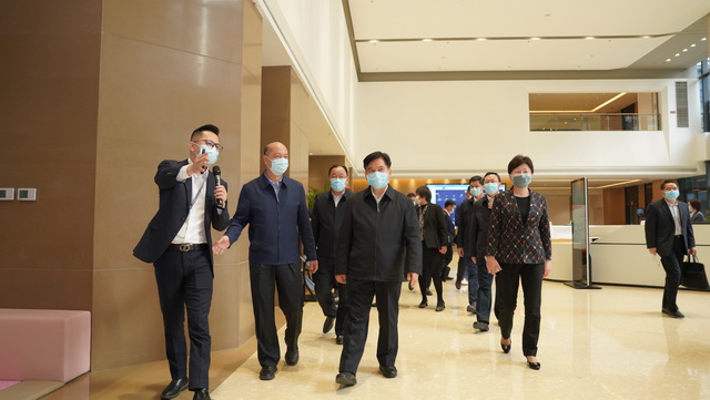 在聽取項目介紹后,調研組一行參觀了休閑文化配套空間、護理樓、養老公寓等區域,對象嶼慈愛的長者入住進展、醫養結合、慈愛學院課程開設、疫情防控等整體情況及運營成果進行深入了解,重點關注了包括“智慧一卡通”、全院可視化管理系統、智能餐盤等在內的智慧化養老服務體系,并給予充分肯定。