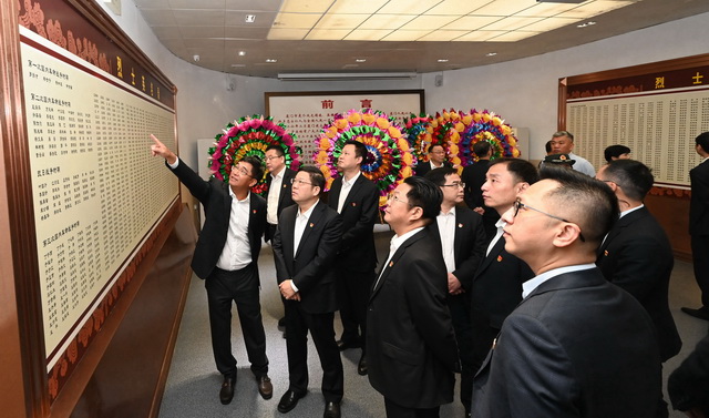 祭掃儀式結束后,全體人員在講解員的帶領下,參觀黨史學習教育參觀學習點——廈門革命烈士事跡陳列館。墻上的烈士英名錄,每個名字的背后都長存一段可歌可泣的故事,都承載著一個光耀千秋的歷史篇章,都是一段不容忘卻的歷史記憶。全體人員駐足凝視,傾聽了解羅揚才、楊世寧、劉惜芬等烈士的奮斗歷程、光輝事跡。他們表示,烈士無怨無悔地投身革命,展現(xiàn)出大無畏的犧牲精神和崇高的民族氣節(jié),要將他們的事跡永銘于心,汲取攻堅克難的勇氣和智慧,將優(yōu)良傳統(tǒng)代代相傳。