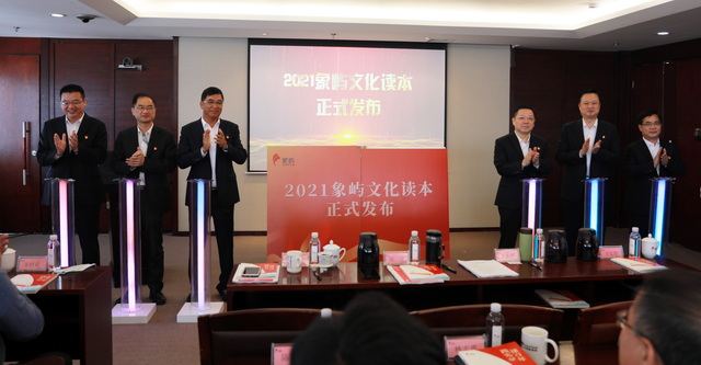 黨委副書記邵蕰默,黨委委員、象嶼股份黨委書記、總經理鄧啟東,黨委委員、紀委書記許振龍共同發布象嶼文化讀本