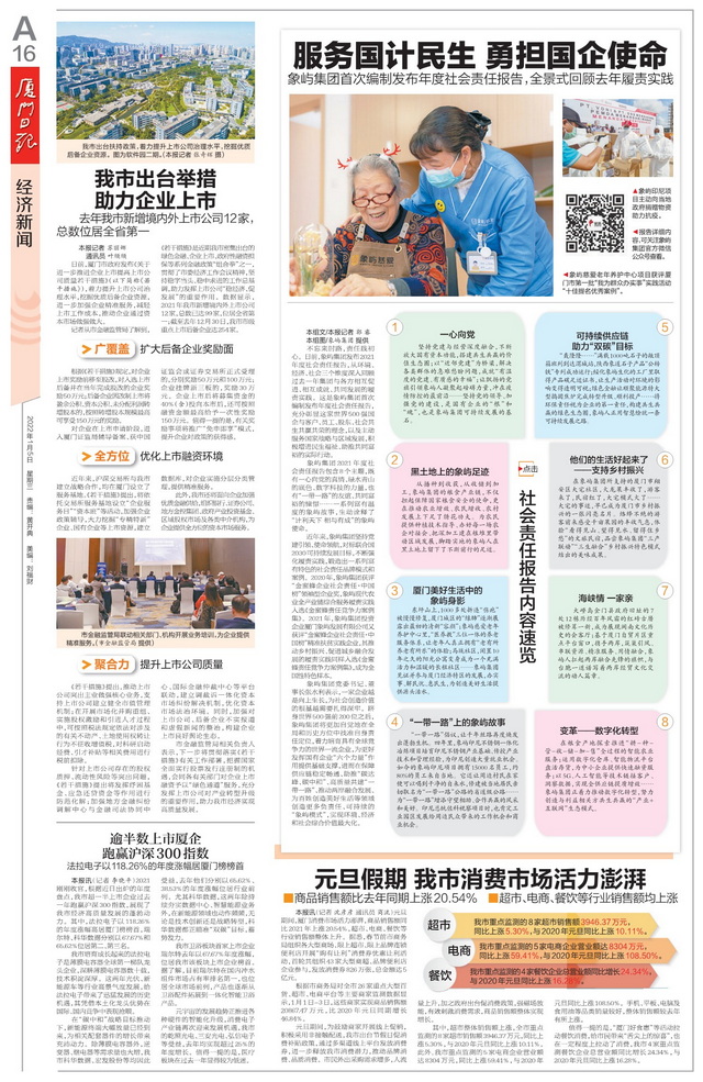 不忘來時路,責(zé)任踐初心。日前,象嶼集團發(fā)布2021年度社會責(zé)任報告,從環(huán)境、經(jīng)濟、社會三個維度深入回顧過去一年集團與各方相互促進、相互成就、共同發(fā)展的履責(zé)實踐。這是象嶼集團首次編制發(fā)布年度社會責(zé)任報告,充分彰顯這家世界500強國企與客戶、員工、股東、社會共生共贏共榮的理念,以及主動服務(wù)國家戰(zhàn)略與區(qū)域發(fā)展,積極增進民生福祉、助推共同富裕的實際行動。