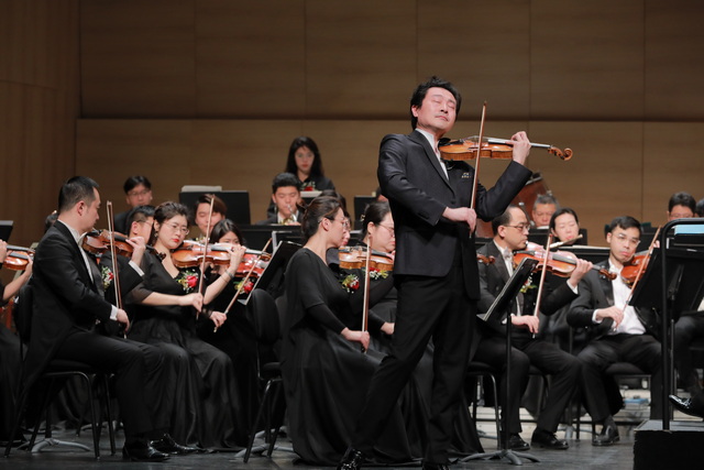 音樂會下半場,呂思清的登臺將現場氣氛推向高潮。作為當今樂壇最活躍、最知名的中國小提琴家之一,呂思清經常受邀與國內外著名樂團合作,將美妙琴音傳遍世界四十多個國家和地區的著名演出場所。此次攜手廈門愛樂樂團,他帶來小提琴協奏曲《梁祝》,經典旋律流淌而出,于深情處細膩委婉,于激憤處如泣如訴,把動人愛情演奏得蕩氣回腸。一曲終了,全場爆發出經久不息的掌聲。受現場熱情感染,呂思清兩度返場,加演了《陽光照耀著塔什庫爾干》《沉思》兩首曲目,將節日的歡愉和新年的祝福送給廈門聽眾。