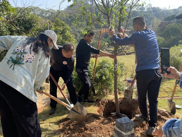 此次義務植樹活動中,象嶼集團本部及下屬各行業公司領導、員工,共建部隊官兵,共建學校外國語中學湖里分校師生,精準雙報到單位殿前街道、長樂社區代表等百余人來到這里,攜手種下30余棵櫻花樹。大家揮鏟培土,踩實固苗,再親手掛上認養標牌,許下“櫻花紅陌上,楊柳綠池邊”的美麗約定。