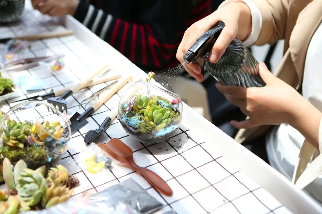二次處理的咖啡渣作土壤,搭配清新綠植,一個個萌態十足的專屬花園就此誕生。別忘了拿上小綠植信息科普卡,學習綠植栽培養護小知識,讓這片綠意久久相伴。