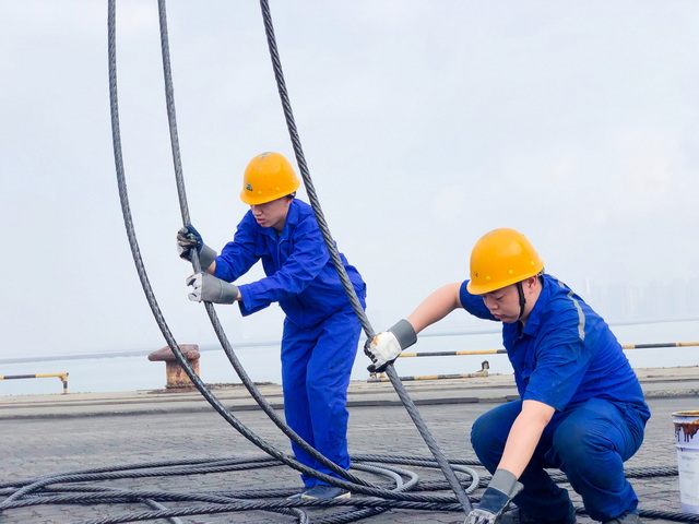 去年七月,“打兩針疫苗才能上外輪”的政策開始執行,當時很多作業人員還在等待第二針接種,合作單位的第二針普及率也不高。“不管多困難,也得上!”為保證裝卸進度,已完成兩針接種的機械隊員工主動承擔了所有的艙內工作,經常是白班連著夜班干,一干就是一個半班(16小時)。