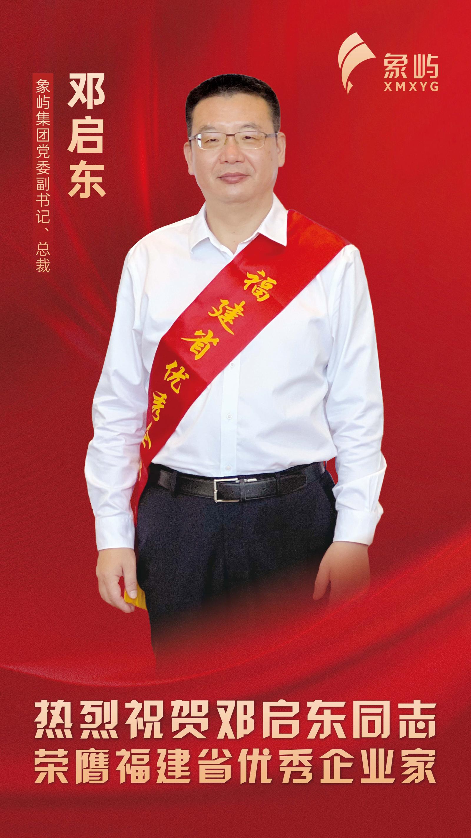 今天上午,第十九屆福建省優秀企業家表彰大會在福州舉行,象嶼集團黨委副書記、總裁鄧啟東榮膺福建省優秀企業家。